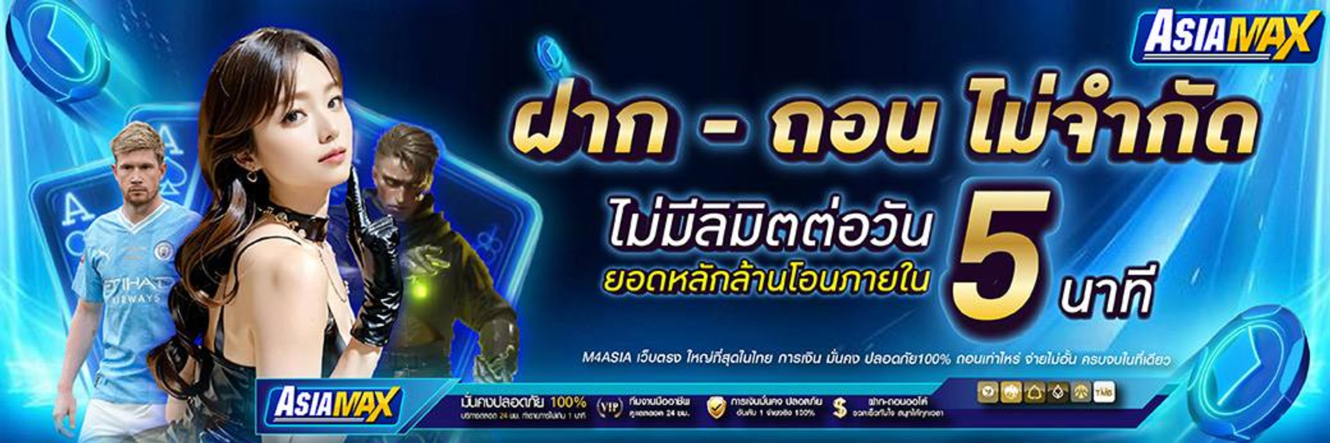 ที่สำคัญ ASIAMAX มีระบบฝาก-ถอนอัตโนมัติรวดเร็วทันใจ รองรับทุกธนาคารและ True Money Wallet พร้อมทีมงานคอยให้บริการตลอด 24 ชั่วโมง หากมีปัญหาหรือข้อสงสัยสามารถติดต่อได้ทันที