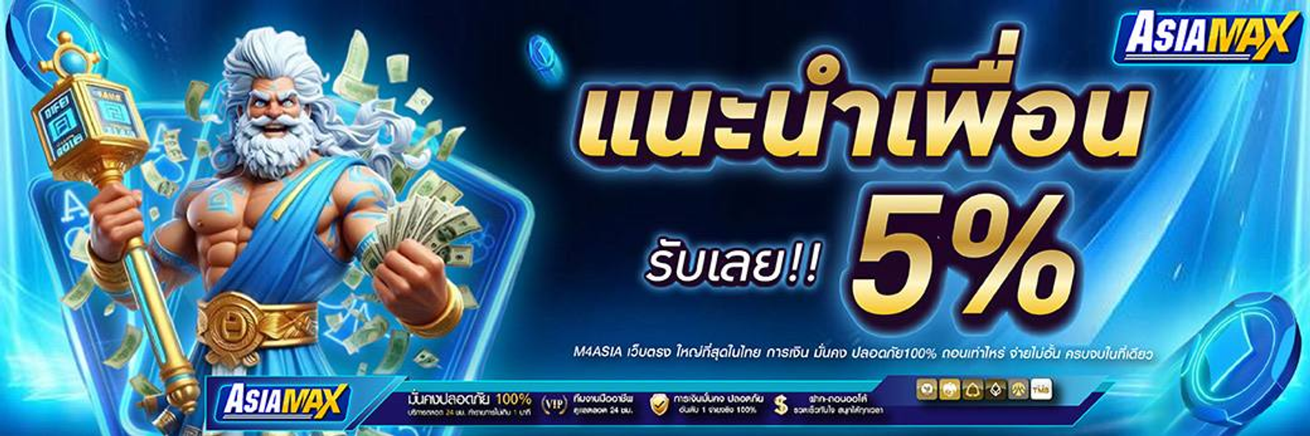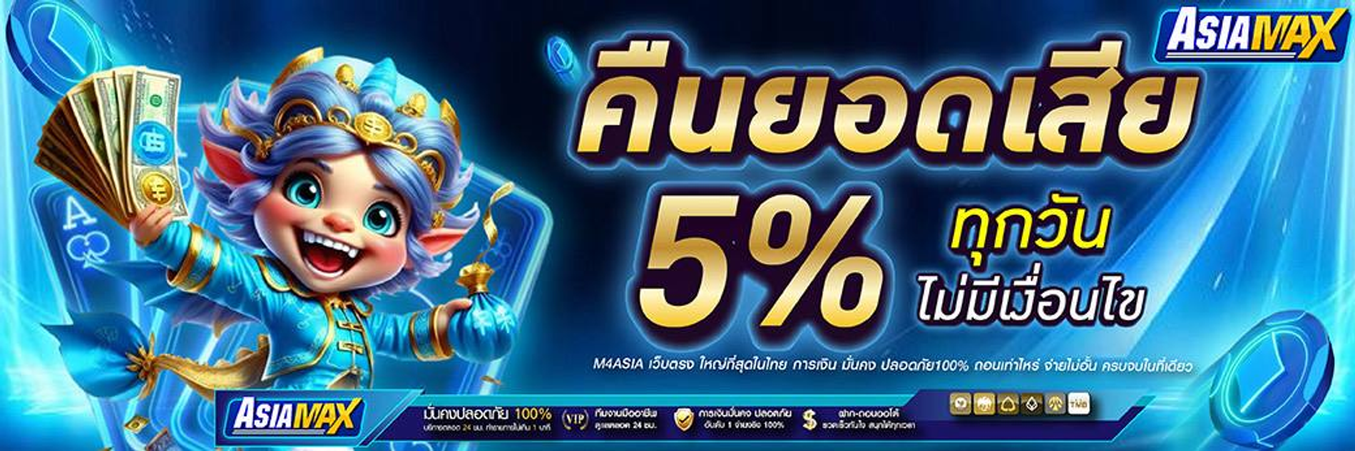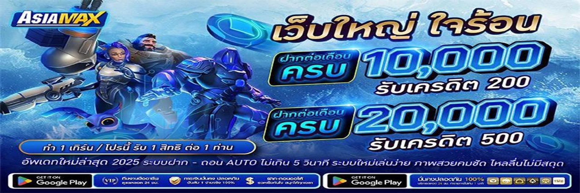 เรื่องโปรโมชั่น ASIAMAX ก็จัดเต็ม มีโบนัสต้อนรับสมาชิกใหม่สูงถึง 100% เครดิตฟรีและโบนัสเติมเงินรายวัน รวมถึงคืนยอดเสียให้ทุกสัปดาห์ ยิ่งเล่นยิ่งได้เครดิตสะสมที่แลกของรางวัลได้